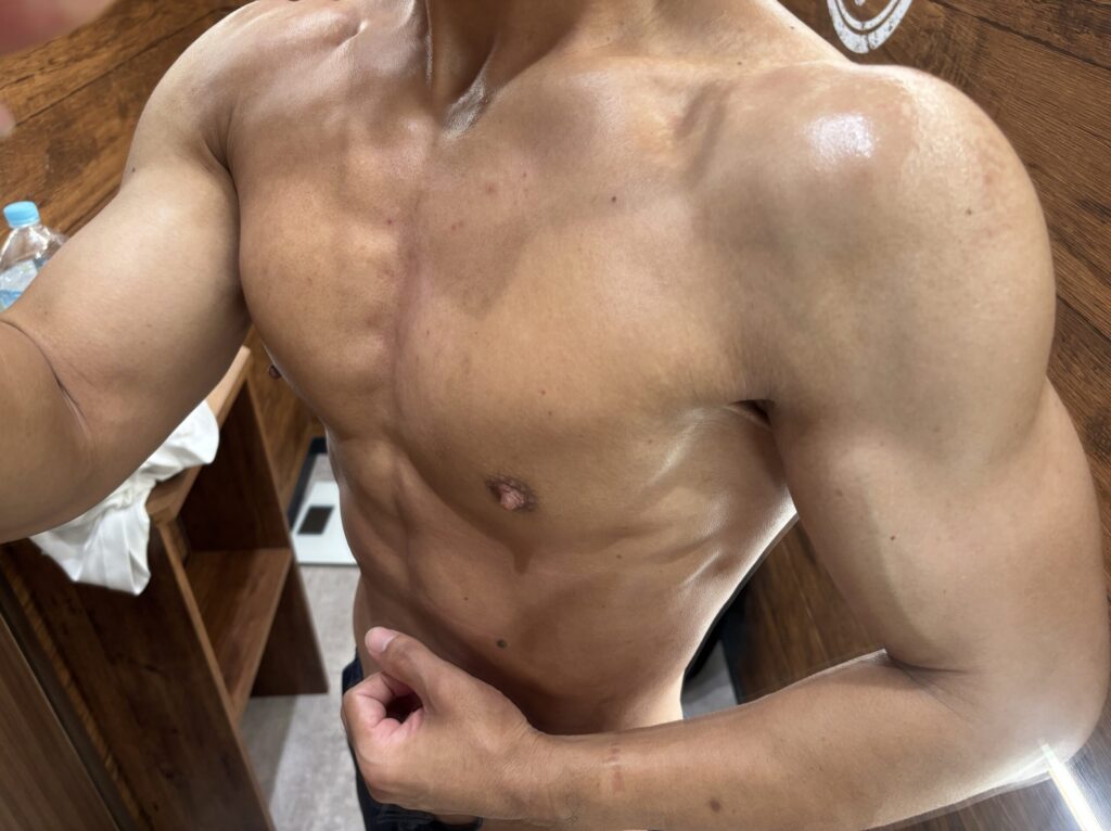 てきてるが胸と広背筋(特に下背)、腹筋が薄
