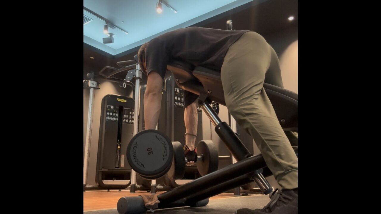 - インクラインダンベルロウ30kg4セット