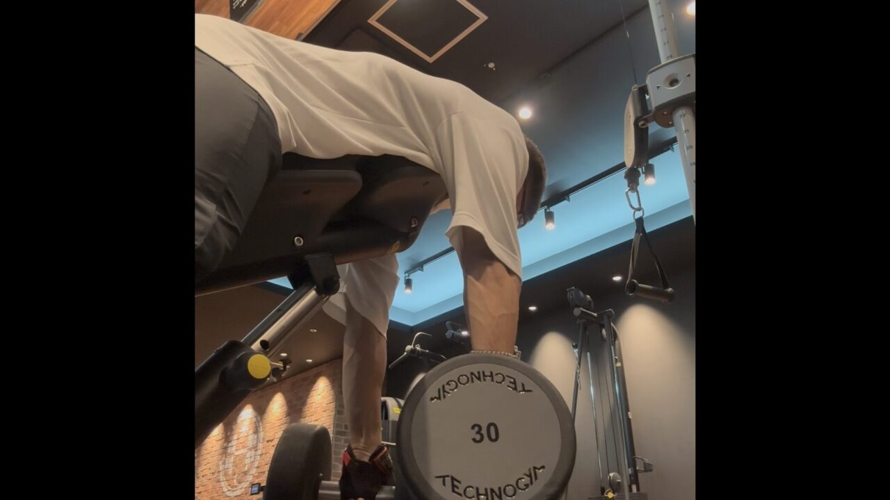 • ベントオーバーロウ広背筋60kg4セット、僧帽筋40kg4セット