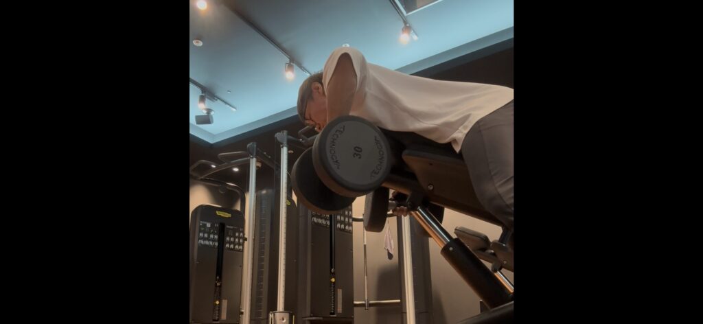- インクラインダンベルロウ30kg4セット